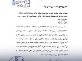 اطلاعیه در خصوص صدور مجوز فعاليت شركت معتمد